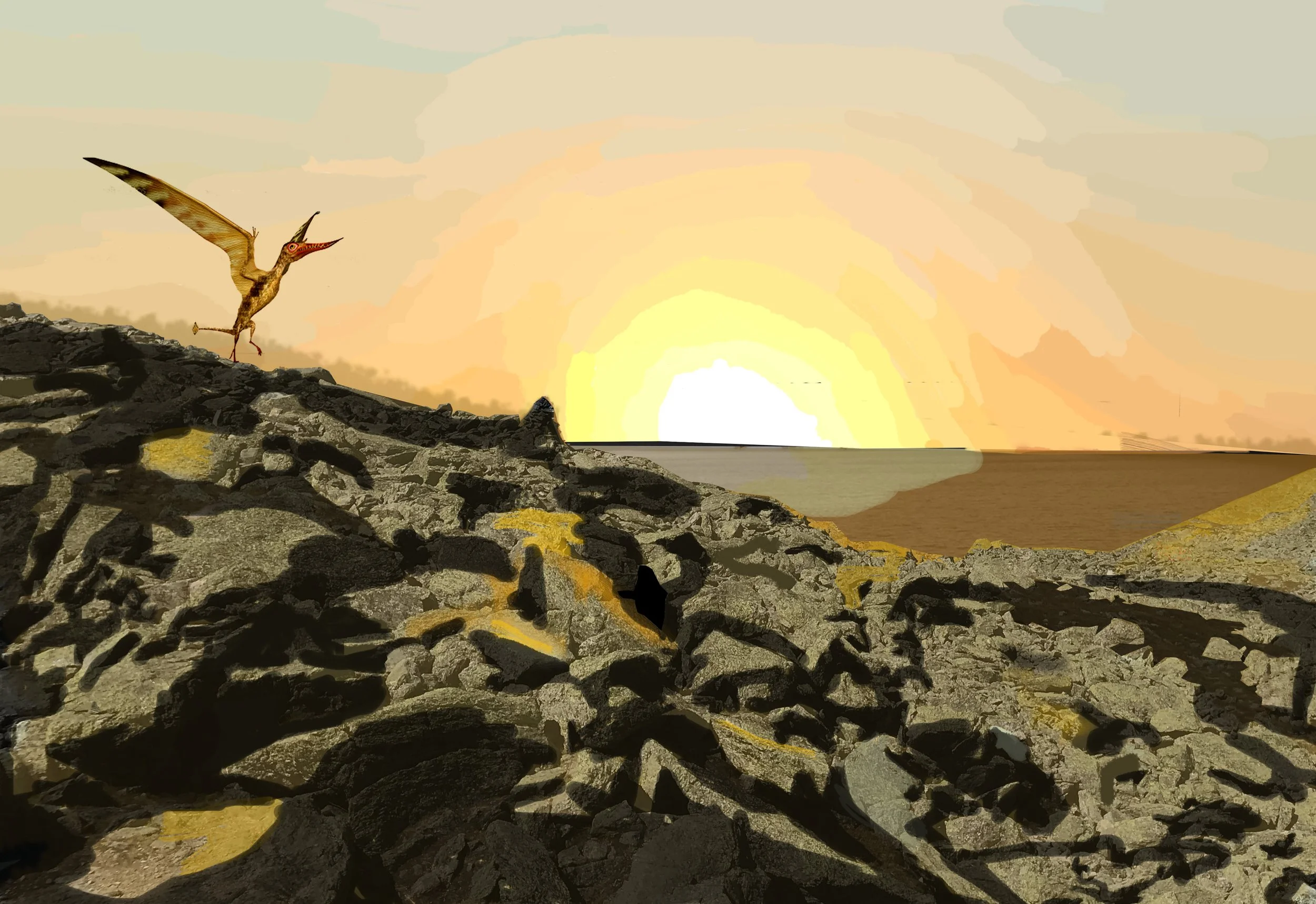In my digital arts class, we were given an assignment to make a landscape that was either in the past or in the future, and I knew exactly what I wanted to do with this project. As a prehistoric enthusiast, this project will showcase Germany, 160 million years ago during the Jurassic. Before there were alpines, there were archipelagos. Reptiles ruled the lands, the seas and the skies. While 215 million years ago in the Triassic, pterosaurs started to appear, here in the Jurassic, pterosaurs, like this rhamphorhynchus, became more common place. Especially in coastal environments, where fish was plentiful.