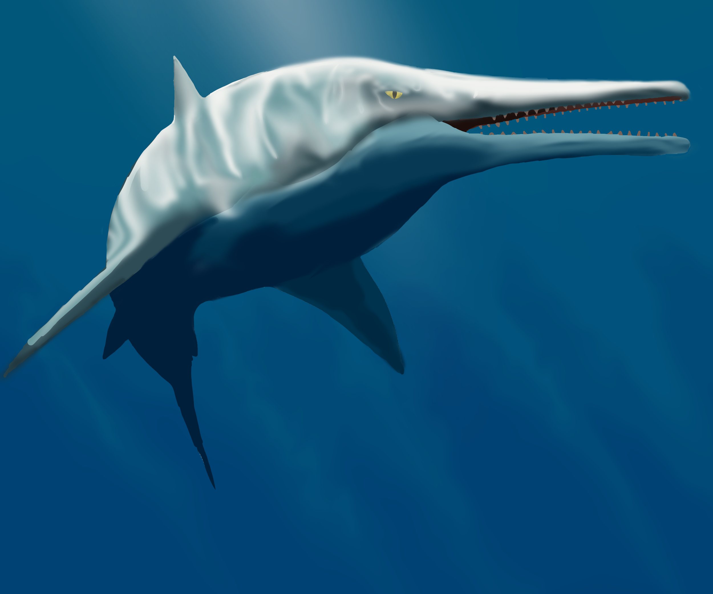 Meaning “Cutting Tooth Lizard”, temnodontosaurus was an ichthyosaur that prowled the open oceans of Europe during the Early Jurassic. Reaching a length of 10 meters (33 feet) it was the apex predator of the open ocean. Its massive eyes were surrounded by sclerotic rings, allowing it not only to see in the dark depths, but survive it as well. It’s teeth were serrated and tough, designed for ripping apart any animal it catches while also allowing it to pierce even the toughest shells. Stomach contents found in some fossils includes cephalopods and even juvenile ichthyosaurs.