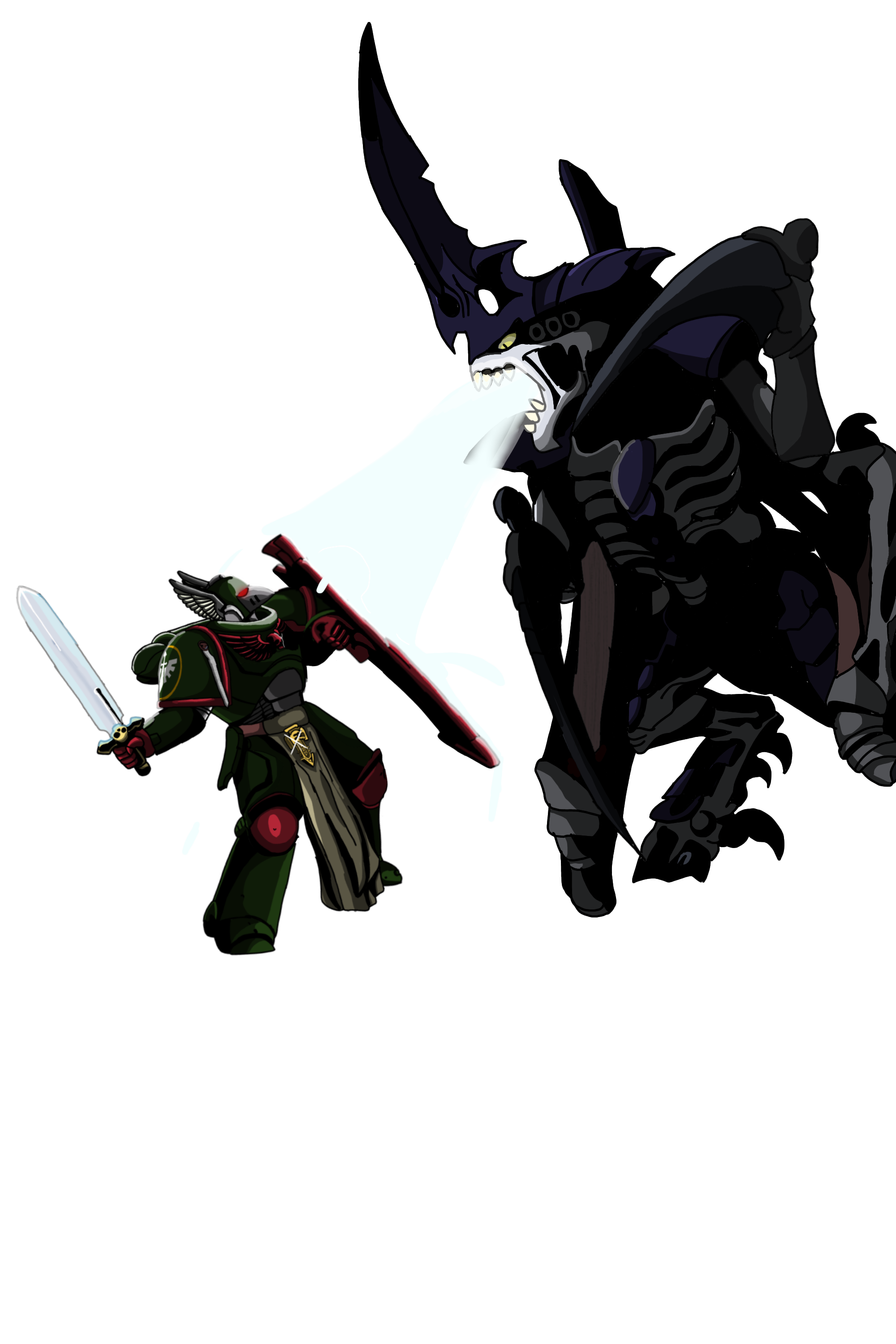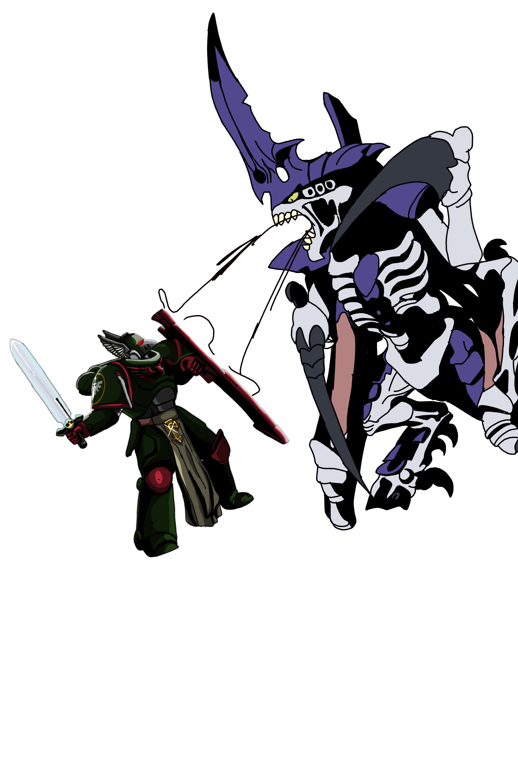For anyone who doesn’t understand the universe of Warhammer 40,000, the Dark Angels are a legion of Space Marines. The Space marines are genetically modified humans that stand 7 feet tall and are decked out in power armor. The tyranids are a hive mind alien race of countless numbers who consumed the biomass of entire planets in order to grow stronger. When they invade a planet, they arrives in the millions and are led by a hive tyrant. When the hive tyrant is destroyed, so to is the fleet.